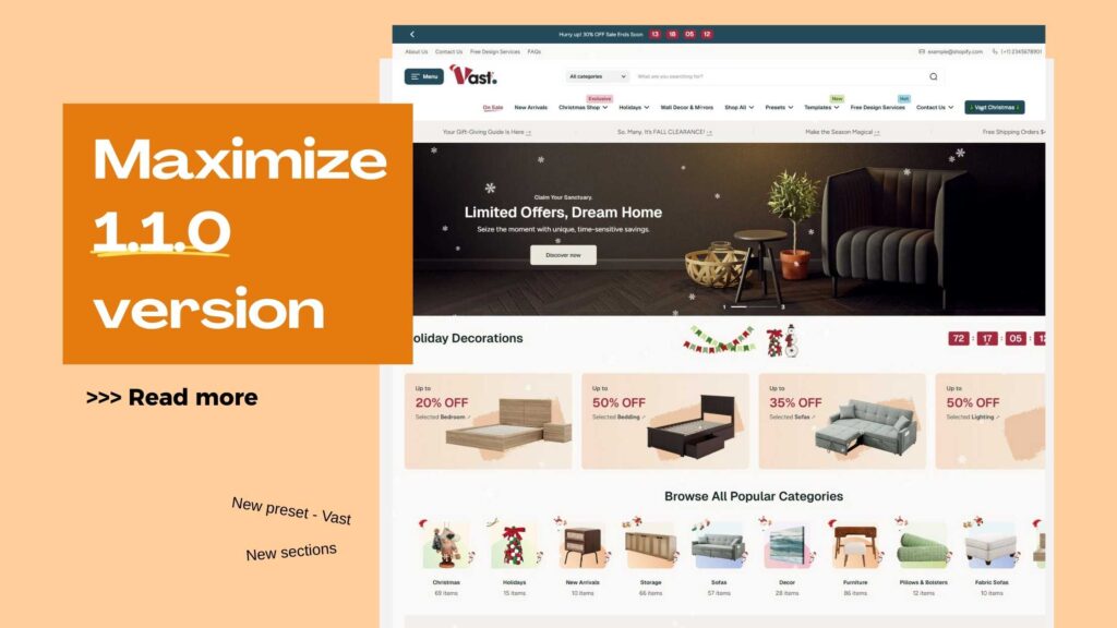 Alongside all these great features, Maximize 1.1.0 also brings you a stunning new preset: Vigor. Designed specifically for home and decor stores, as seen in the image above, Vigor offers a sophisticated, dark aesthetic that screams luxury and comfort.