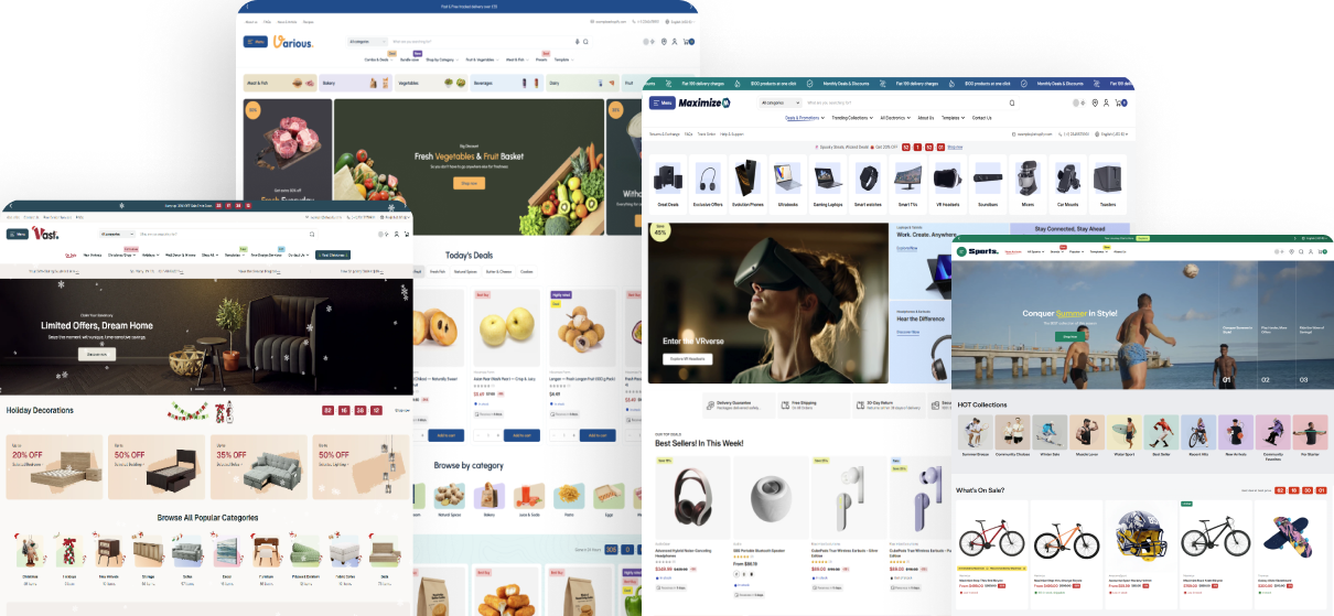 Built for large catalogs, multi-product stores, and B2B businesses. Features smart navigation that helps shoppers find exactly what they need.